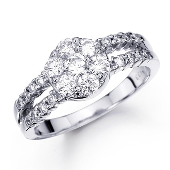 Oro bianco diamante Cluster fiore di fidanzamento anello di nozze per il nuovo anno per le coppie anniversari e feste